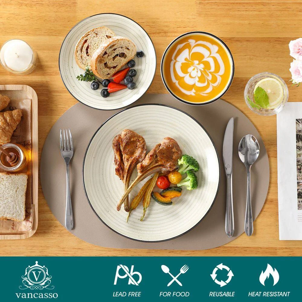 Bonbon 12-piece bowls and plates dinnerware set setting for 4 is an ideal gift for yourself and your loved ones. Made of handpainted spirals pattern and durable stoneware, this graceful table setting has been crafted for long-lasting satisfaction and enjoyment. Cleaning up is as simple as can be with dishwasher safe dinnerware. Perfectly compatible with many cold and hot food without worry about chips, nicks, cracks and scratches. Ideal use for daily life or festival decoration.