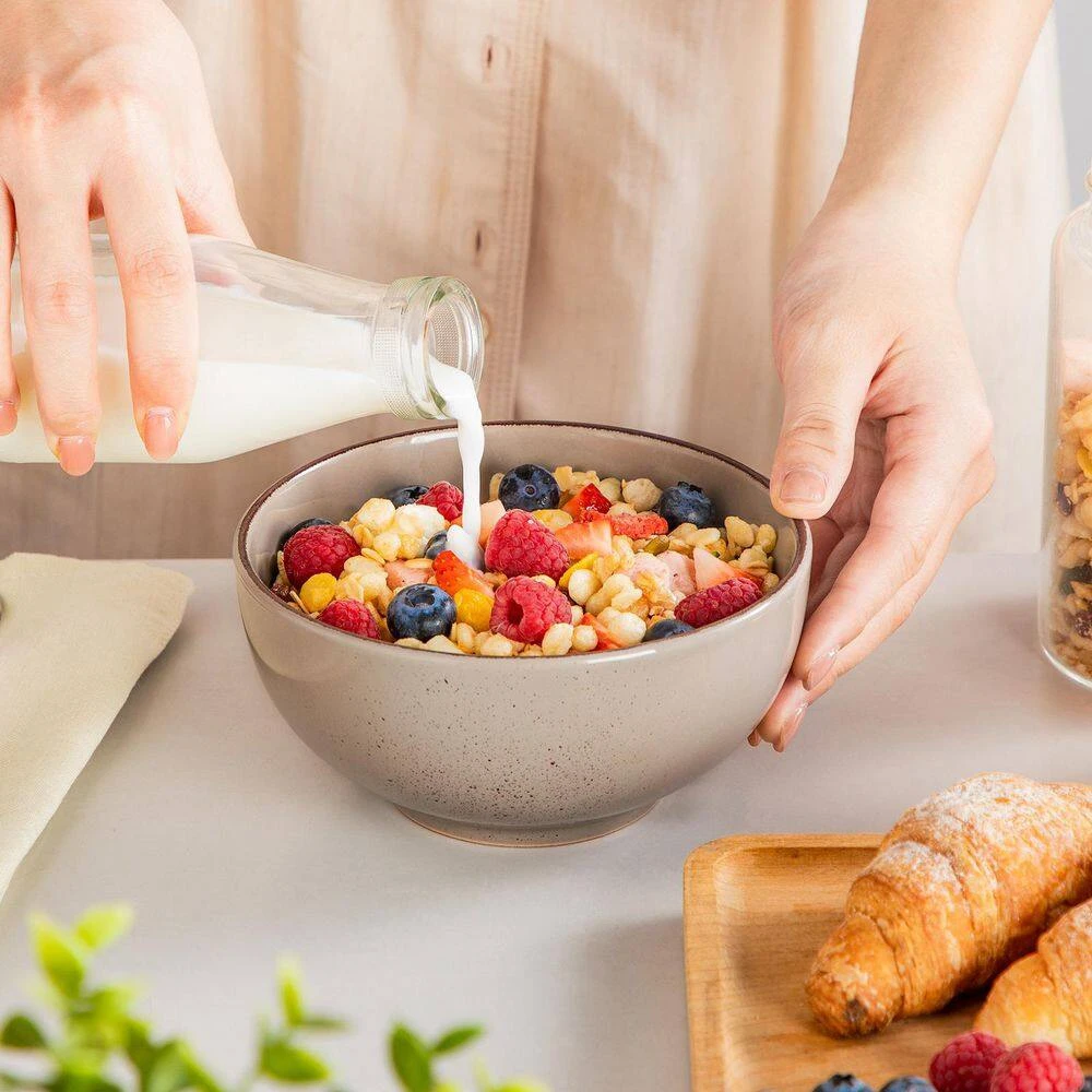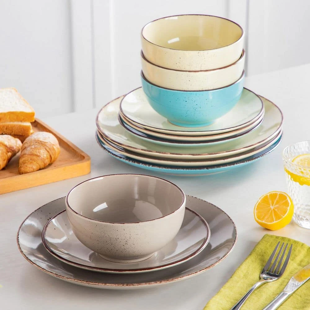 Navia bowls and plates set delights with its vibrant array of colors, ensuring your table bursts with personality and style. This multi-colored (gray, light blue, cream, beige) dinnerware complements any dining decor effortlessly. 12-piece multi-colored (gray, light blue, cream, beige) bowls and plates set service for 4, includes 4-piece 10.5 in. dinner plates, 4-piece 8 in. dessert plates and 4-piece 5.8 in. cereal bowls (24 oz.). Ideal for housewarmings, weddings, or birthdays, Navia makes a thoughtful gift. Its elegant presentation and practicality ensure it’s a cherished addition to any home.