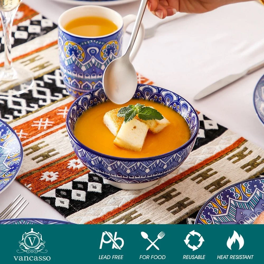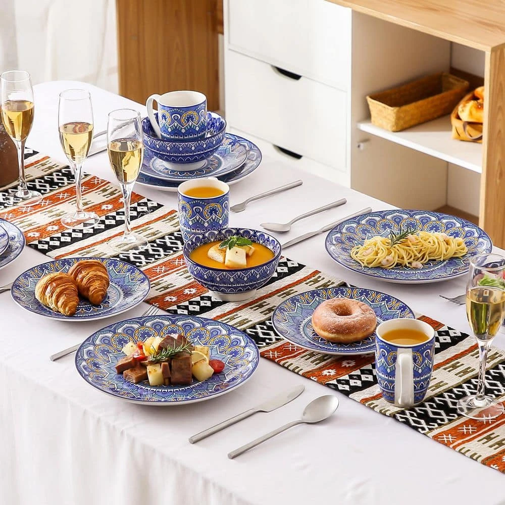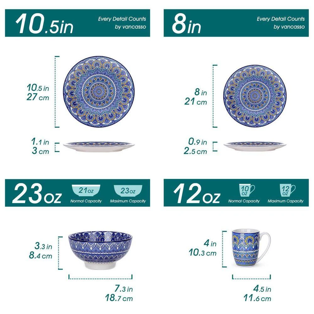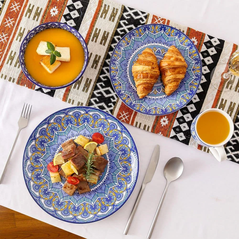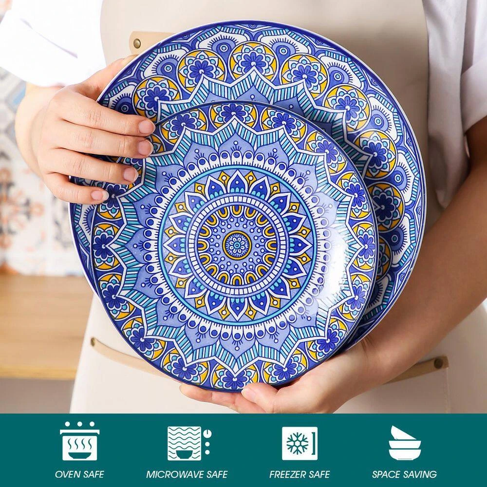 Inspired by the free-spirited Bohemian lifestyle, the Mandala dinnerware set brings a touch of vibrant artistry to your table. Adorned with intricate mandala patterns, capturing the essence of boho elegance and cultural heritage. The rich colors and detailed designs reflect a celebration of individuality, making every meal a moment of personal expression. High quality healthy porcelain, Non-Toxic, Lead and Cadmium free, twice fired at high temperatures to make it strong, hard and nonporous. Will no any chemical reaction with the food, and won’t transfer odors, colors or flavors between uses. Perfectly compatible with cold & hot food without worry about chips, nicks and scratches. Wonderful Enjoyment in any Occasions: 1. For Home Decoration: excellent for decorating your kitchen or dining room; 2. For Gift: a great choice as a graduation gift, wedding gift, anniversary gift, housewarming, baby shower or holiday gift – especially Mother’s Day, Thanksgiving or Christmas.
