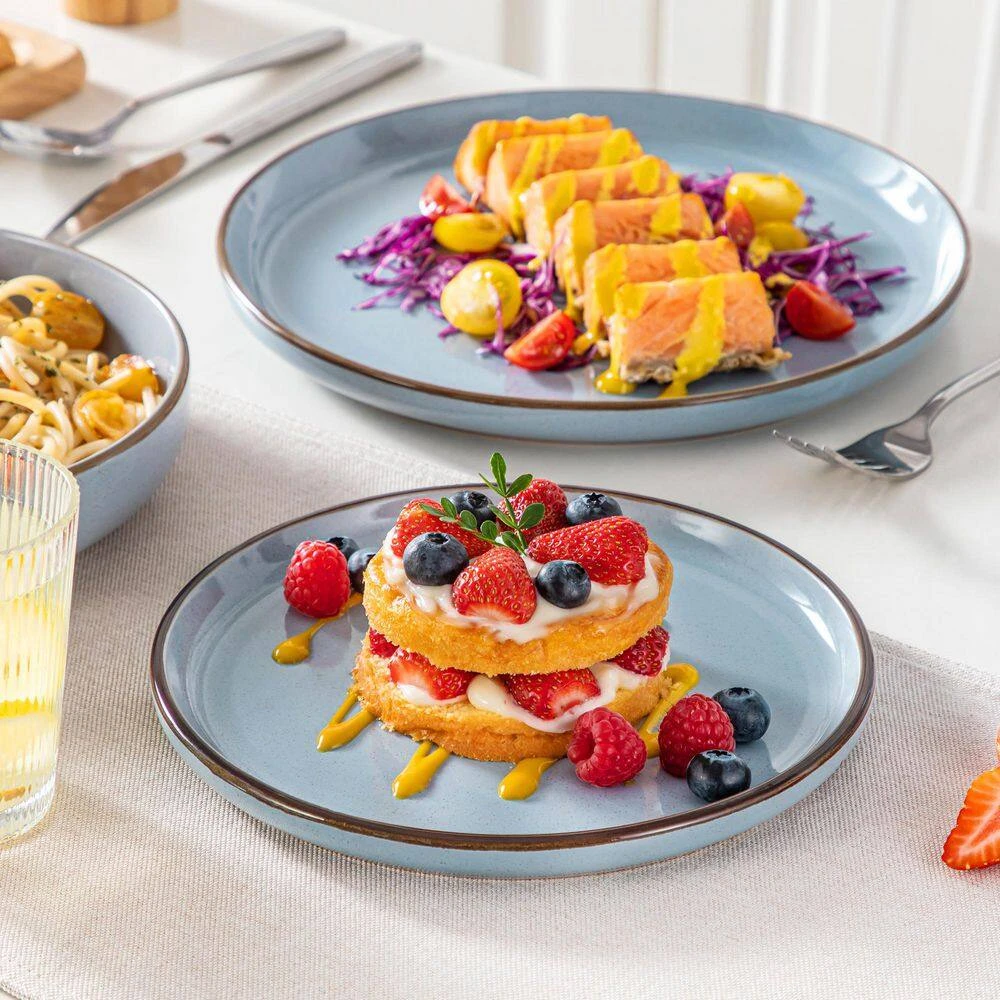 - Meticulously crafted with high-quality durable stoneware, fired at the 1280°C high temperature to ensuring long-lasting durability and resistance to chipping or breakage, FDA-certified and steak-knife-safe, built to withstand daily family meals or bustling restaurants