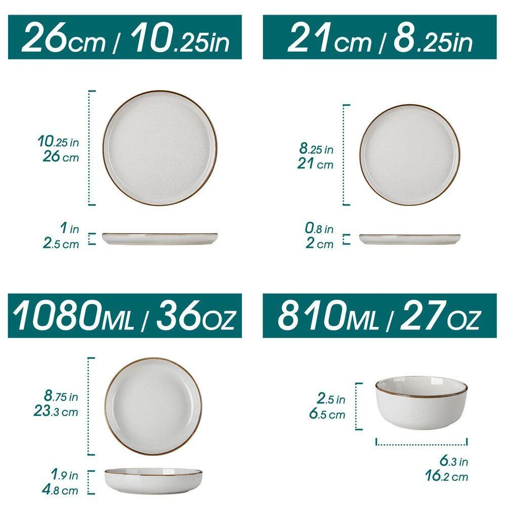 - Complete dinner sets service for 4-people, this 16-piece bowls and plates dinner (set for 4) people includes 4 x 10.25 in. dinner plates, 4 x 8.25 in. salad plates, 4 x 8.75 in. soup plates (36 oz.) and 4 x 6.3 in. cereal bowls (27 oz.), multi-functional dinner set, 10.25 in. dinner plates: use as dinner plates for pasta, side plates for tapas, or serving plates for appetizers 8.25 in. dessert plates: use as small dinner plates for pasta, salad, dessert, side plates for tapas. 8.75 in. soup plates: use as pasta bowls for pasta, soup, salad, etc 6.3 in. cereal bowls: use as dinner bowl for cereal, ice cream, rice, soup, fruit, perfectly portioned for home gatherings, sunday brunches or catering events