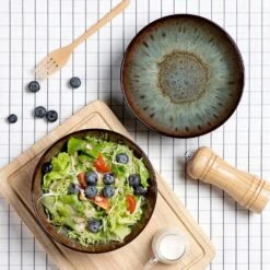 - Made from more carefully selected, prepared and blended dense stoneware, twice fired at high temperatures to make it strong, hard and nonporous. Plates and bowls set is hard wearing to survive standard wear and tear and using a knife and fork, it can also stand up to the heat from a microwave, dishwasher. This dinner set is coloured by inorganic pigments and produced at high temperatures, the stoneware will not fade and won’t be any chemical reaction with the food