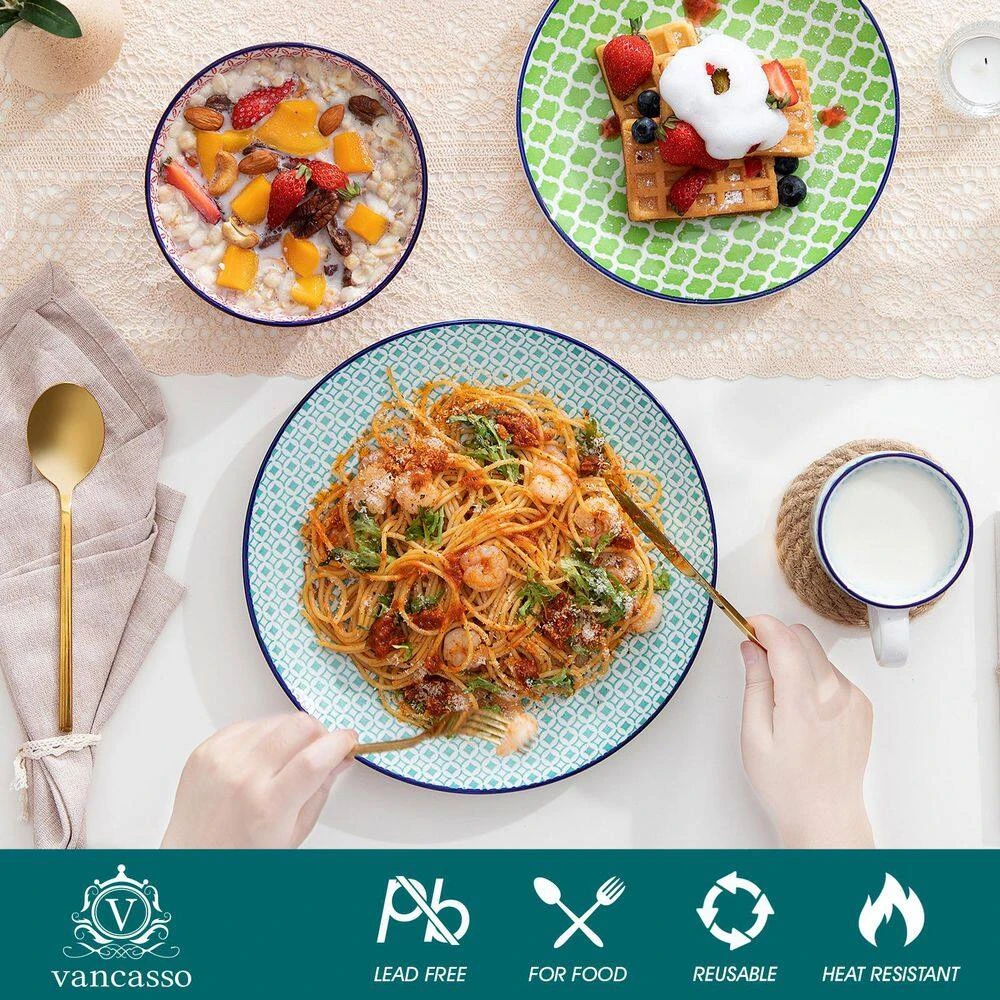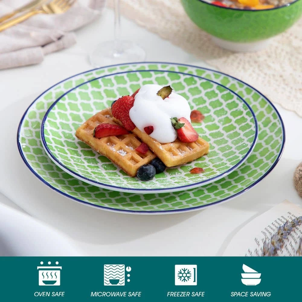 - High-quality porcelain features durability, innocuity, soft touch and beauty, the dinnerware sets are evenly glazed with glossy finish, the surface are very smooth, they will be clean just by rinsing under water, great for home, restaurants and hotel use, ideal for daily use or festival decoration