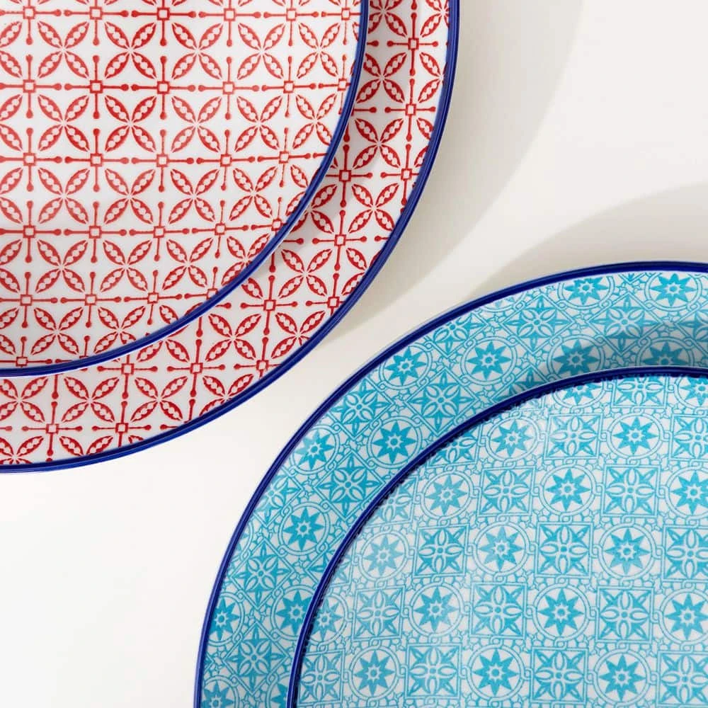 Beautiful pastel colors(red, blue, green, turquoise), absolutely stunning and vibrant. The patterns and colors are distinct to liven up any table. It helps bring more of your own personality to your table. Perfect for anyone looking for something a bit different to brighten their dining table. Either as an every day set or as a wedding gift or special present.