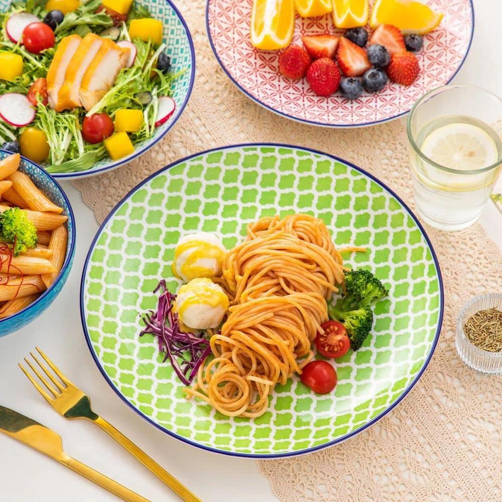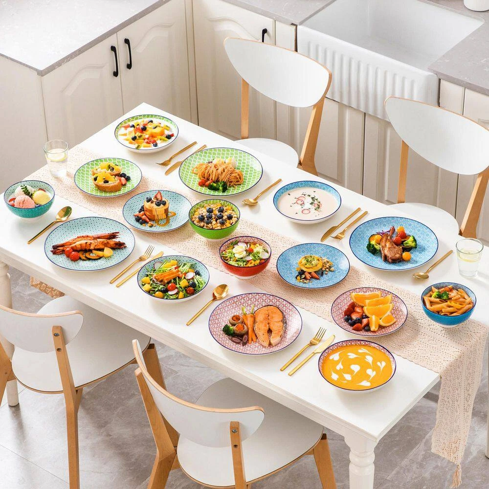 - High-quality porcelain features durability, innocuity, soft touch and beauty, the dinnerware sets are evenly glazed with glossy finish, the surface are very smooth, they will be clean just by rinsing under water, great for home, restaurants and hotel use, ideal for daily use or festival decoration