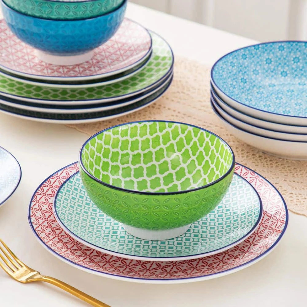 Beautiful pastel colors(red, blue, green, turquoise), absolutely stunning and vibrant. The patterns and colors are distinct to liven up any table. It helps bring more of your own personality to your table. Perfect for anyone looking for something a bit different to brighten their dining table. Either as an every day set or as a wedding gift or special present.