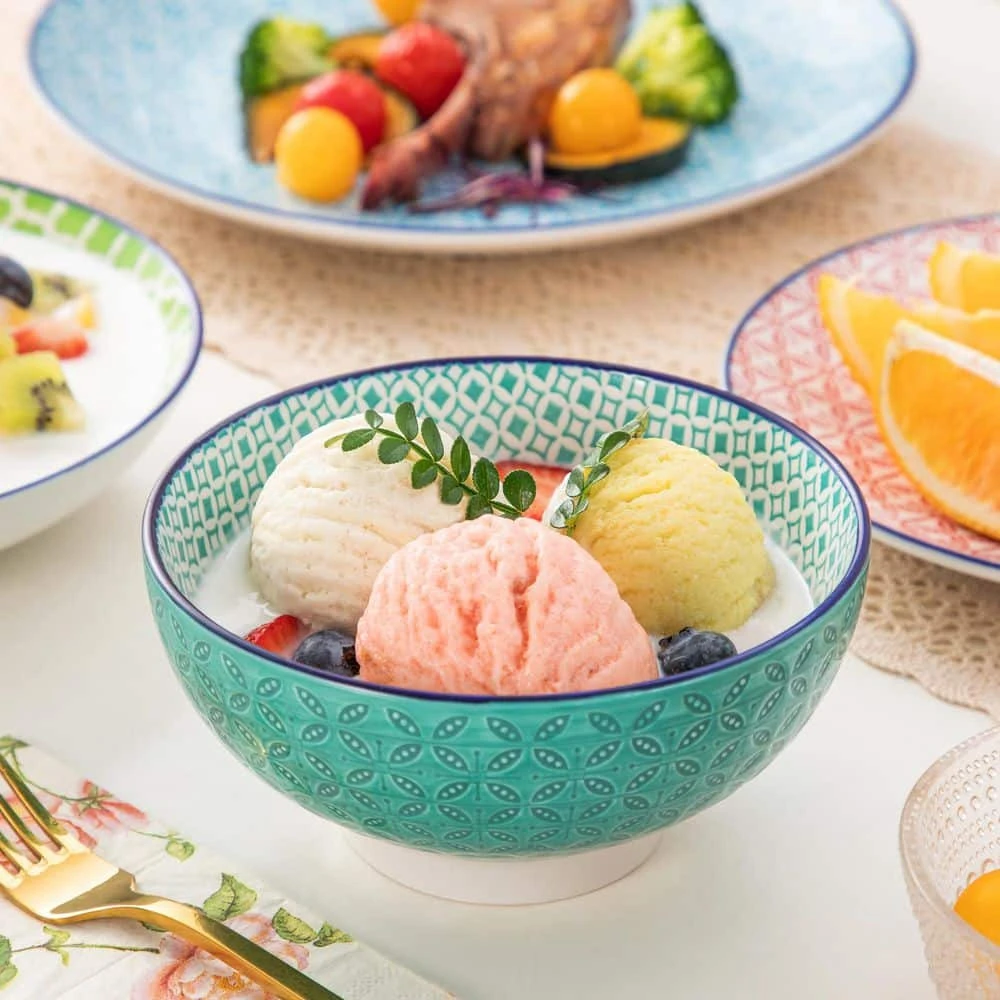 - Belong to the second high-temperature roasting of healthy ceramics, the surface is solid and dense, will not be any chemical reaction with the food, refined ceramic clay first by 800° celsius burning, and then 1300-1400 high temperature glaze burning, can withstand extremes temperatures, not easy to be broken, perfectly compatible with cold and hot food without worry about chips, nicks, cracks, and scratches, non-stick and very easy in cleanning, goes safe in dishwasher and microwave