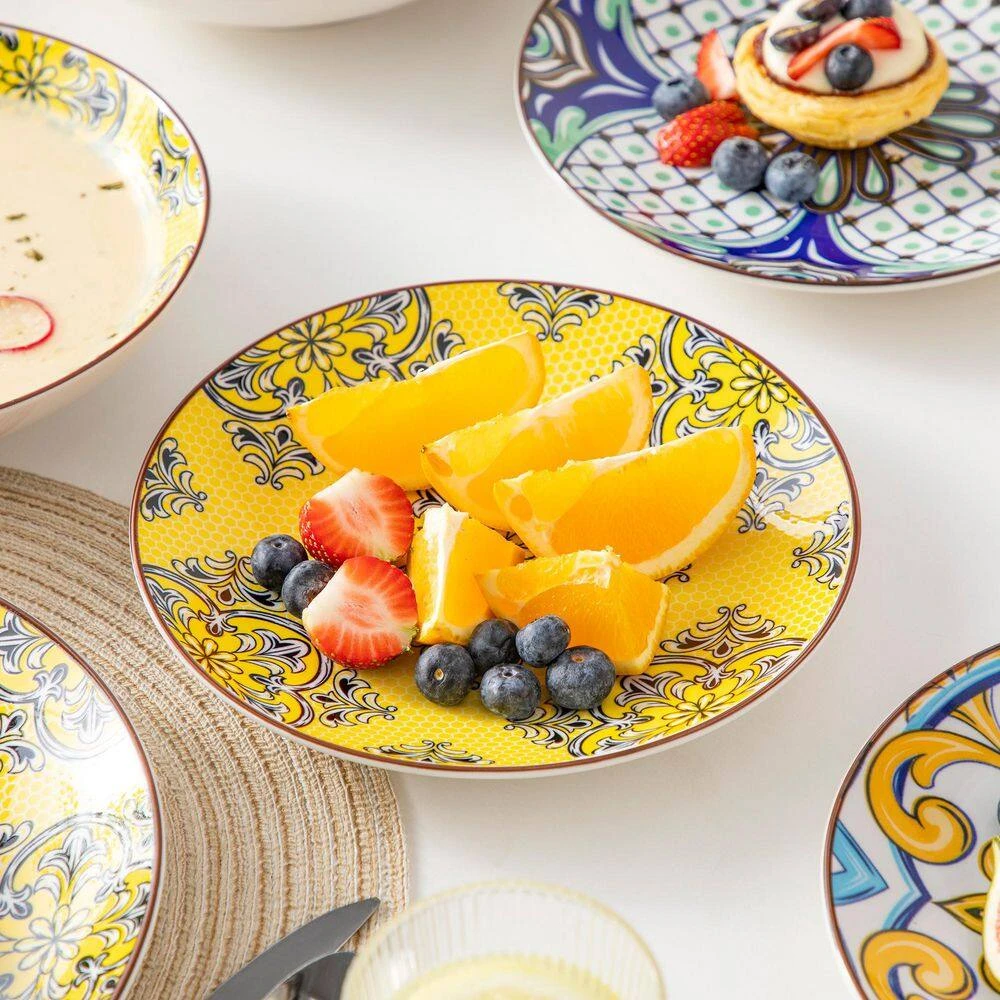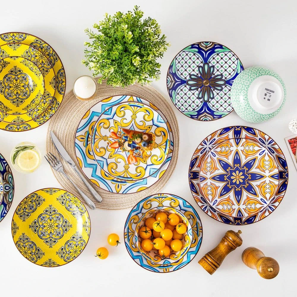 Elevate your dining experience with our exquisite jasmine patterned porcelain dinnerware set, where functionality seamlessly merges with captivating aesthetics. Each plate and bowl is creatively crafted from porcelain ceramic and beautifully colored in stunning colours with four different jasmine patterns. Impressive moroccan style, add a beautiful staple piece to your dining table.