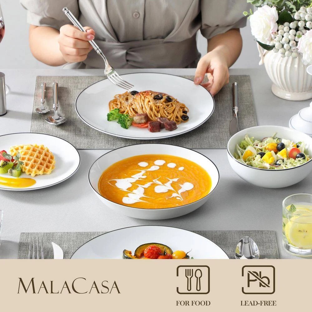 - Microwave safe and dishwasher safe – fired in high temperature, makes our plates and bowls set much harder and resistant to crack, perfectly compatible with cold and hot food without worry about chips, nicks, cracks and scratches, MALACASA dinnerware sets are easy to clean and safe in oven, freezer, dishwasher and microwave