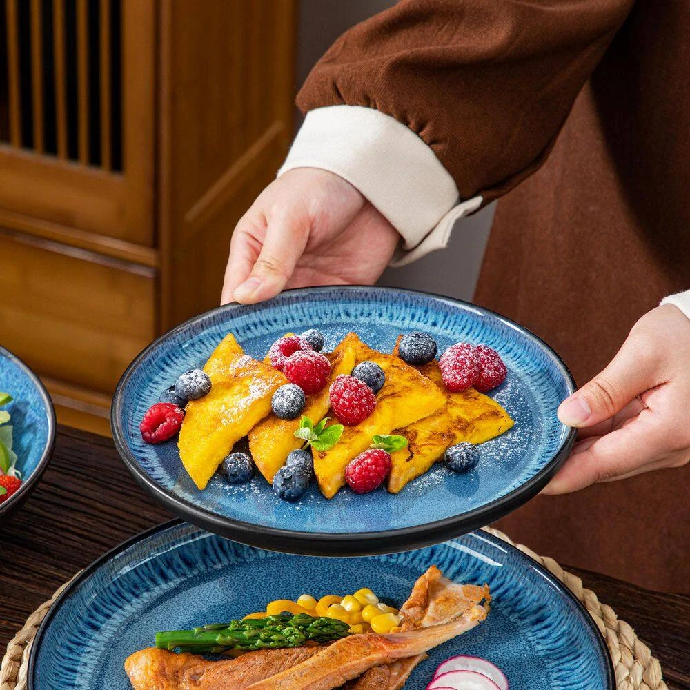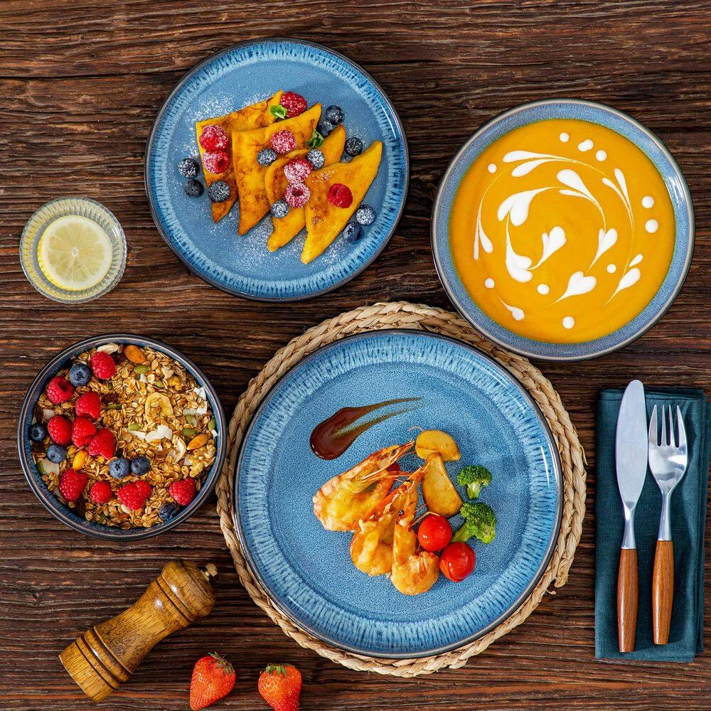- Mediterranean-style crockery set, vancasso PLA tableware is rustic, hand-painted ceramics with a traditional feel, the beautiful plate set makes an impression at the table with the colors of deep blue, the mediterranean design is a real eye-catcher on the table and brings warmth, color, and a touch of coastal charm to your dining experience
