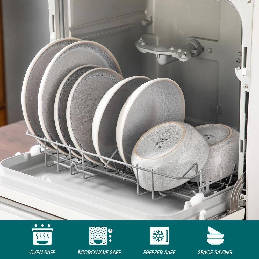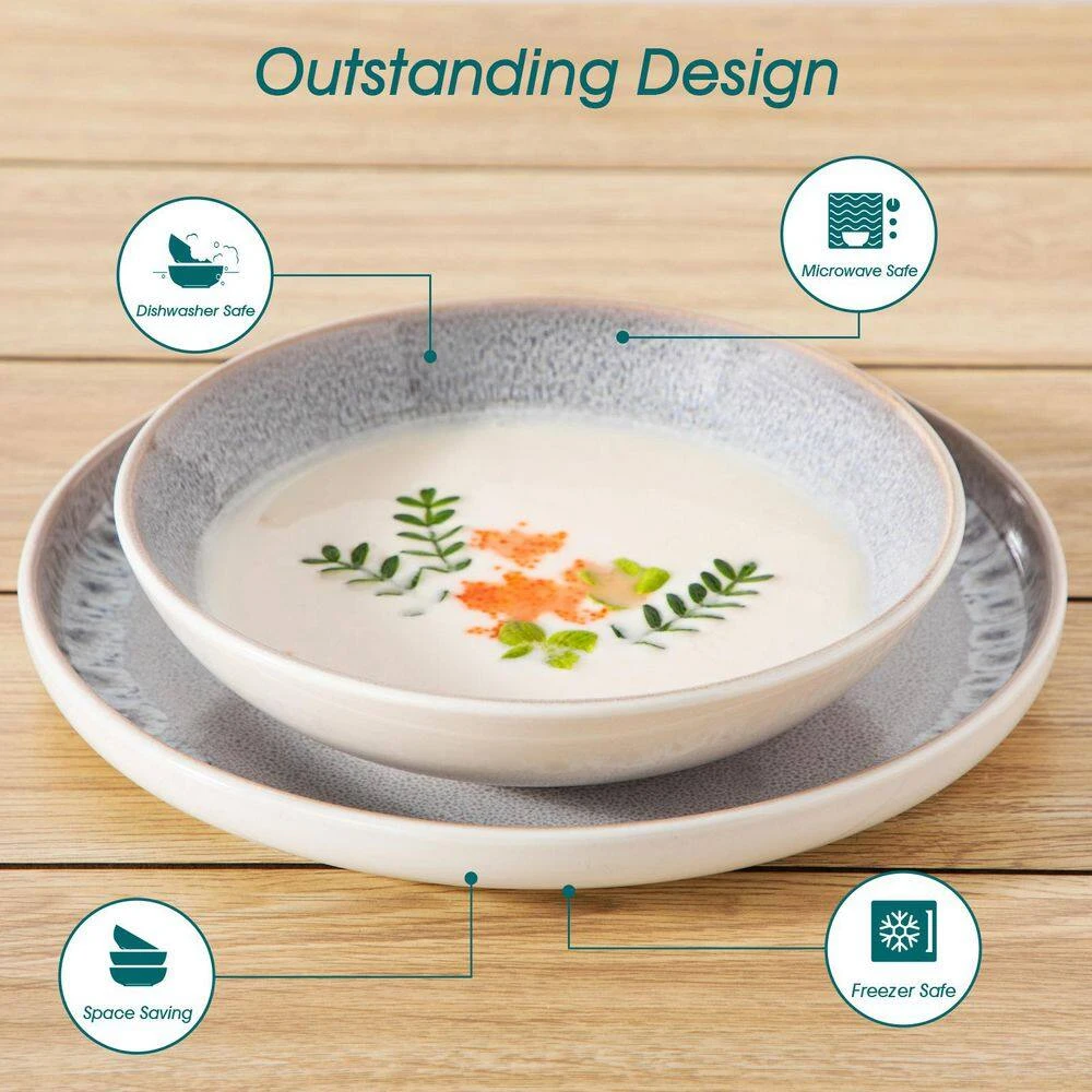 - Made from more carefully selected, prepared, and blended dense stoneware, twice fired at high temperatures to make it strong, hard and nonporous. Will not be any chemical reaction with the food. Perfectly compatible with cold & hot food without worry about chips, nicks, cracks and scratches. More durable than other kinds of pottery and earthenware. It can also stand up to the heat from microwave and dishwasher