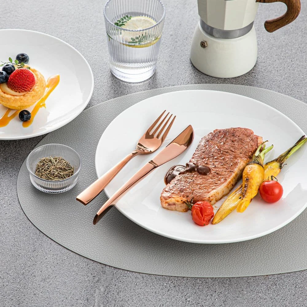 Each piece is fabricated from high-quality stainless steel for optimal corrosion resistance with a luster finish. The flatware features carefully polished surfaces and edges which both look and feel good. This set of flatware will satisfy all the expectations of yours.
