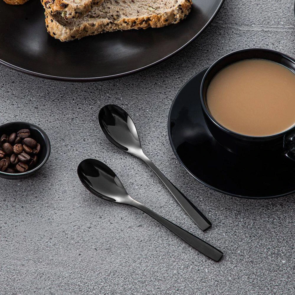 - 48-piece flatware set 12-dinner forks, 12-dinner knives, 12-dinner spoons and 12-teaspoons. Manufactured from high quality stainless steel, impeccable and unbending quality and rounded edges, it is safe to use for both adult and kids. Provide you nice dinner experience, add more fun when have a dinner, exquisite look to impress your family and friends