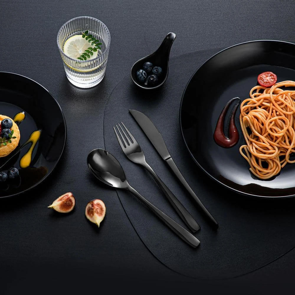 Each piece is fabricated from high-quality stainless steel for optimal corrosion resistance with a luster finish. The flatware features carefully polished surfaces and edges which both look and feel good. This set of flatware will satisfy all the expectations of yours.
