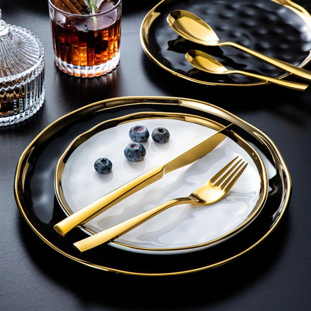 Each piece is fabricated from high-quality stainless steel for optimal corrosion resistance with a luster finish. The flatware features carefully polished surfaces and edges which both look and feel good. This set of flatware will satisfy all the expectations of yours.
