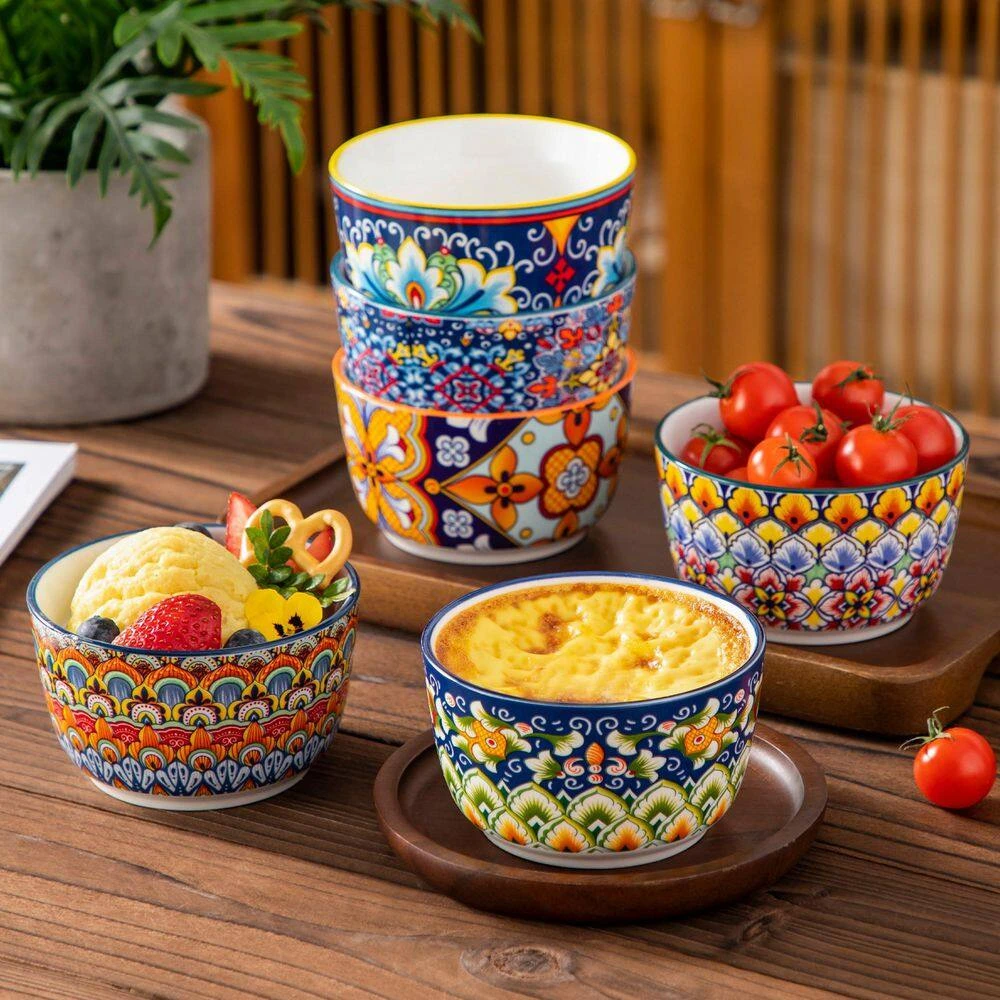 - Vibrant and Colorful Designs – vancasso bohemian style ramekin set features beautiful and detailed designs that capture the free-spirited essence of Bohemian culture. The vibrant colors and artistic patterns bring happiness and positivity to your dining experience, adding a pop of color and style to your dinnerware collection