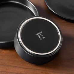 12-Piece Matte Black Stoneware Dinnerware Set Service For 4-Bowls And Plates Set Round Tableware Set