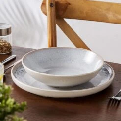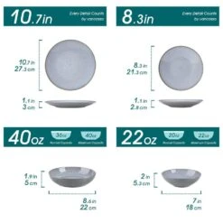 16-Piece Blue Stoneware Dinnerware Set Tableware (Service For 4) Bowls And Plates Dinner Set