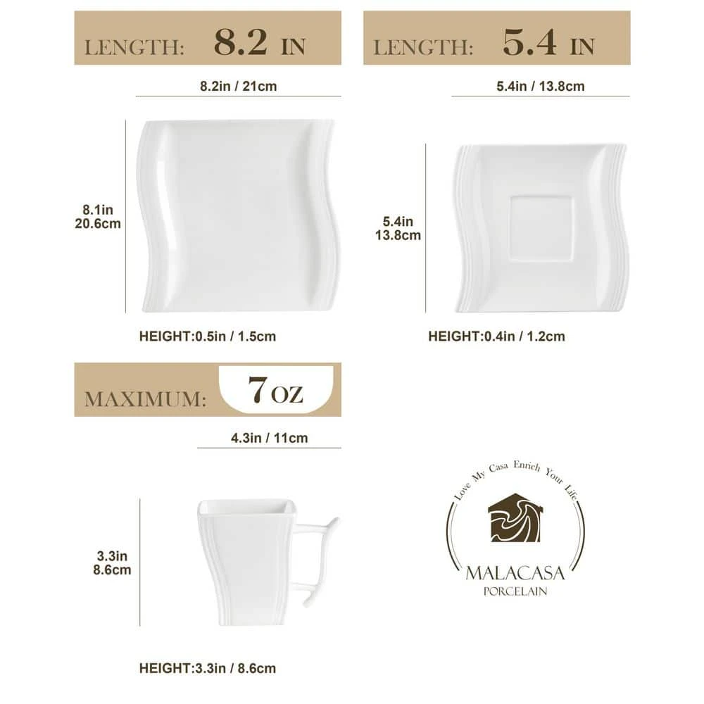 - Package included- MALACASA flora 18 piece dinner sets includes 6-piece dessert plates, 6-piece mugs and 6-piece saucers well packaged with specific carton boxes to better contradict wallop and confirm the parcel arrival in good condition