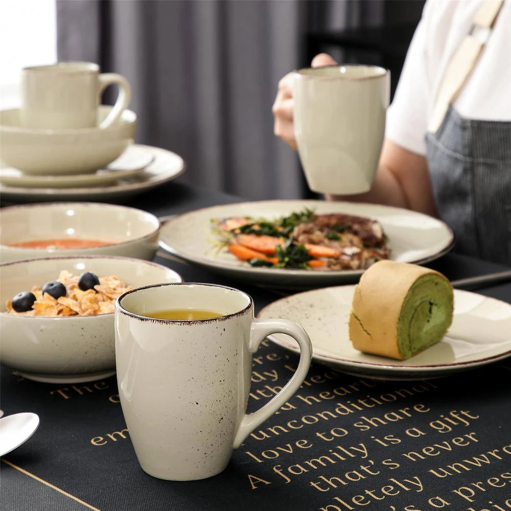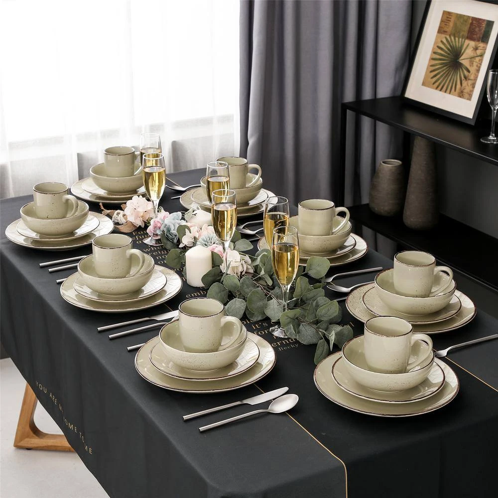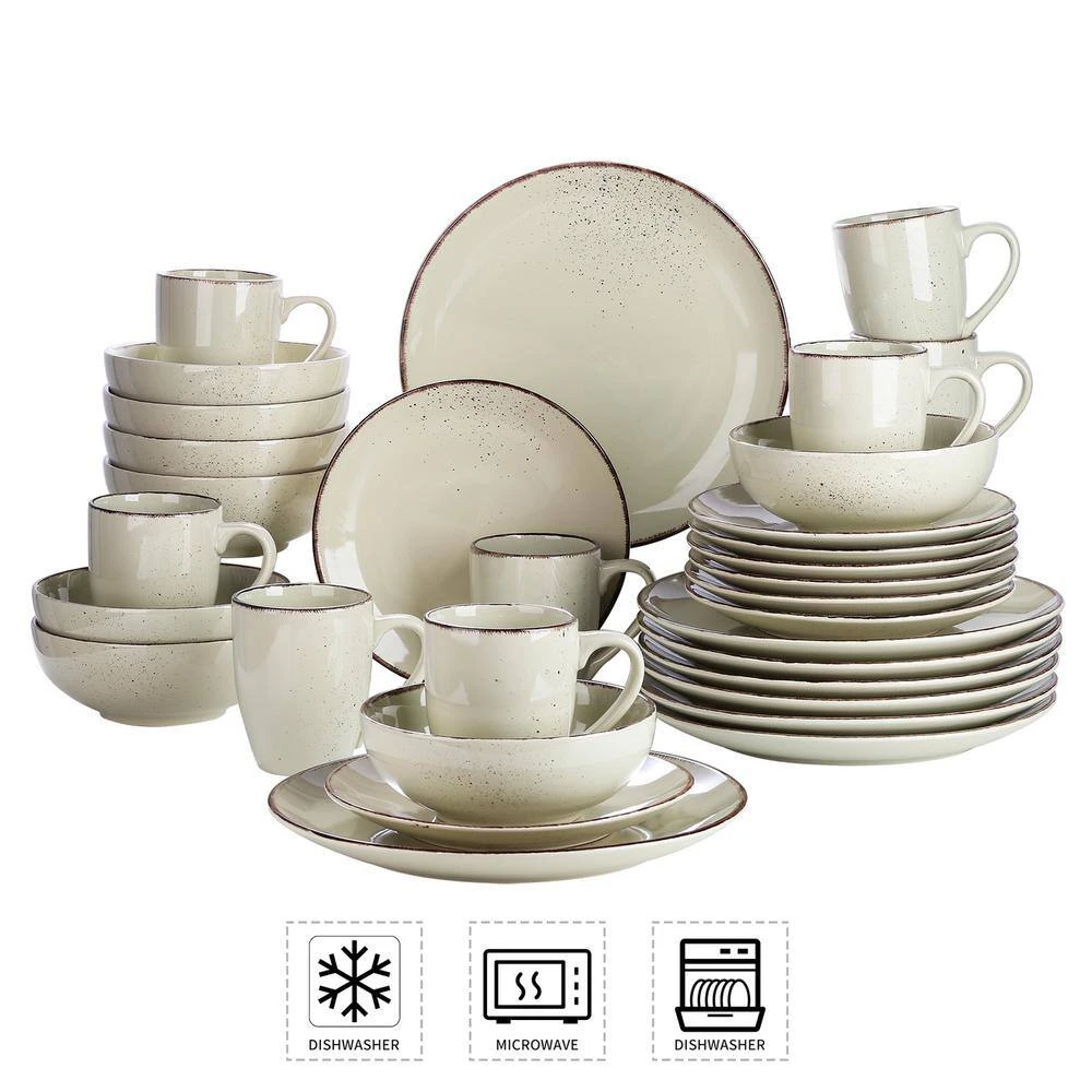 Contemporary chic this set adds fluidity and style to your table with eye-catching designs. This set is high-quality porcelain, the unique contemporary collection will elevate your special occasions and everyday dining. The 32-piece set includes 8 each: dinner plate,dessert plate, soup bowl, mugs. This set is high-quality porcelain that provides upscale appeal and lasting durability.Items feature a matte glaze which brings a modern. All pieces are made of durable stoneware and are dishwasher and microwave safe.