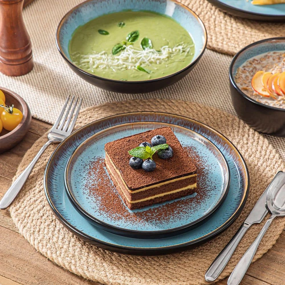 【Handcrafted Beauty & Timeless Design】Two-tone design bowls and plate set, available in a vibrant palette of inside blue (glaze) and outside matte black, where flowing glazes meet raw textures, and no two pieces are ever the same. Fired at high temperatures, each item reveals its own unique hue and pattern, echoing the calm beauty of earth, fire, and time. Handmade in spirit and rich in depth, vancasso series Amber brings warmth, serenity, and a sense of story to your everyday table. Bringing more than just function to your table, it’s a living piece of art.