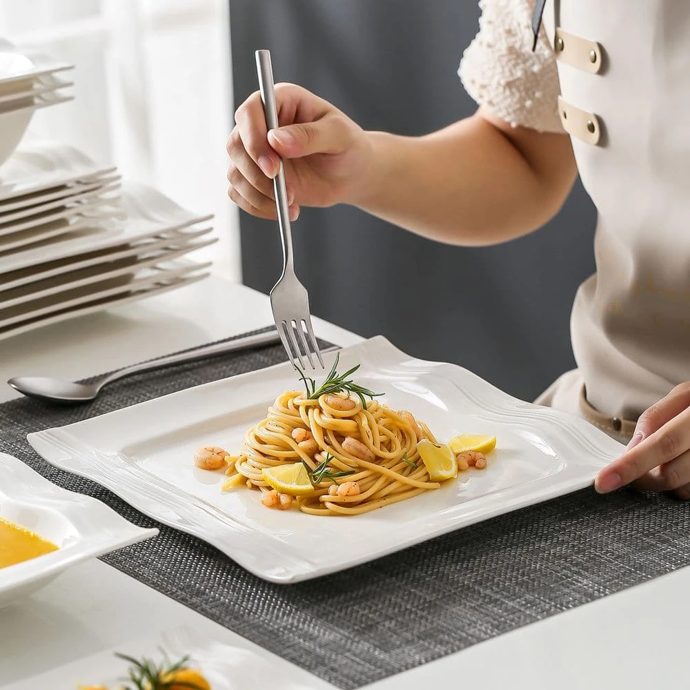 - These porcelain dinnerware set are multi-purpose for daily use, perfect compatible with cold and hot food, ideal for salad,dessert,sauce, snack, pasta, ice cream, noodles etc. Perfect for your kitchen, family dinner, restaurants, wedding, and party.
