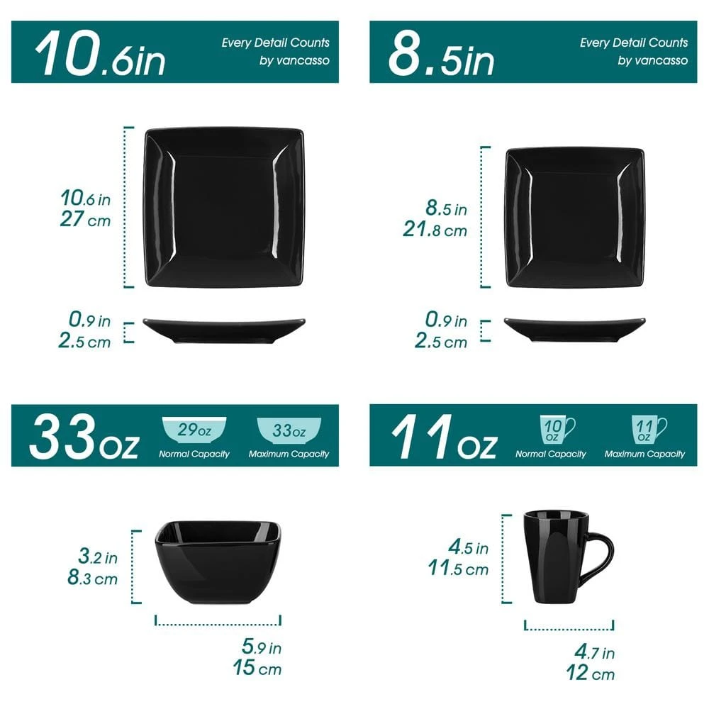 Make a loud statement with your dishes. The perfect balance between trendy cool and modern classicism, these round plates, bowls and cups turn every table into a hip party. These home essentials are expertly crafted, artfully designed and reminiscent of celebrity after-parties. 100% dishwasher and microwave safe for easy cleaning and durability. These pieces go great in a kitchen, dining or outdoor setting. Lay out your most stylish tablecloth, cutlery and stemware and let the these stoneware dishes set do the rest.