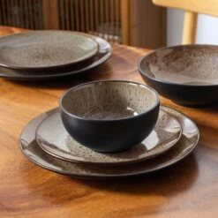 16-Piece Brown Stoneware Dinnerware Set Service For 4 Tableware Set With Plates Bowls And Mugs